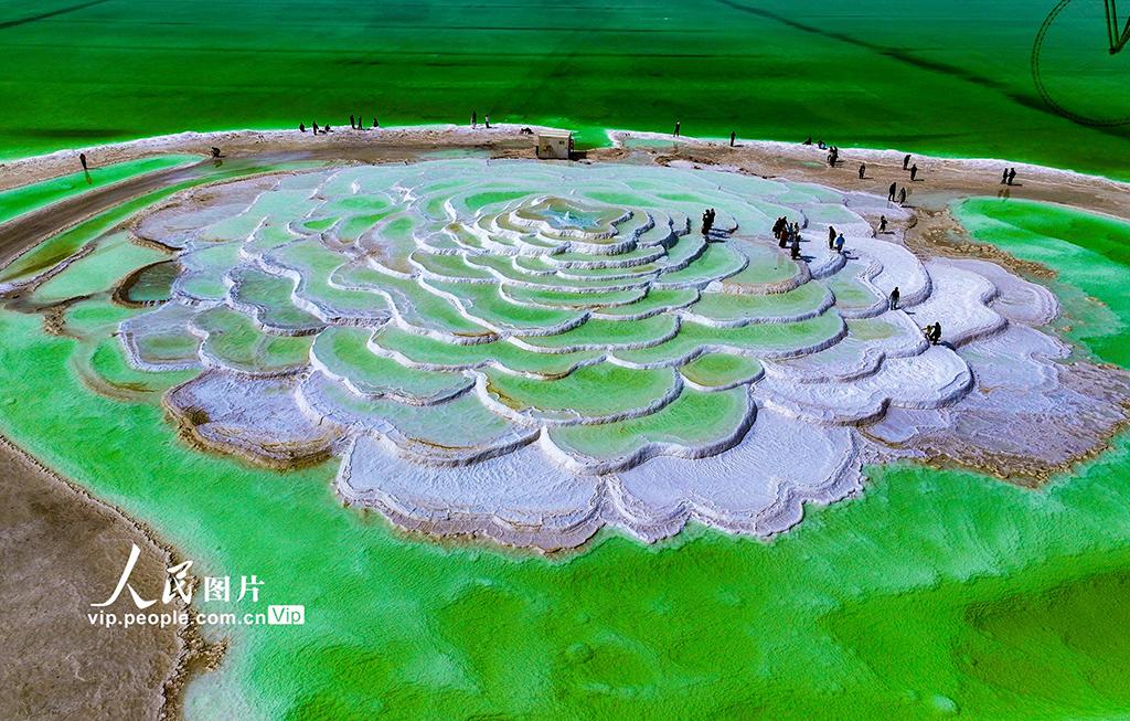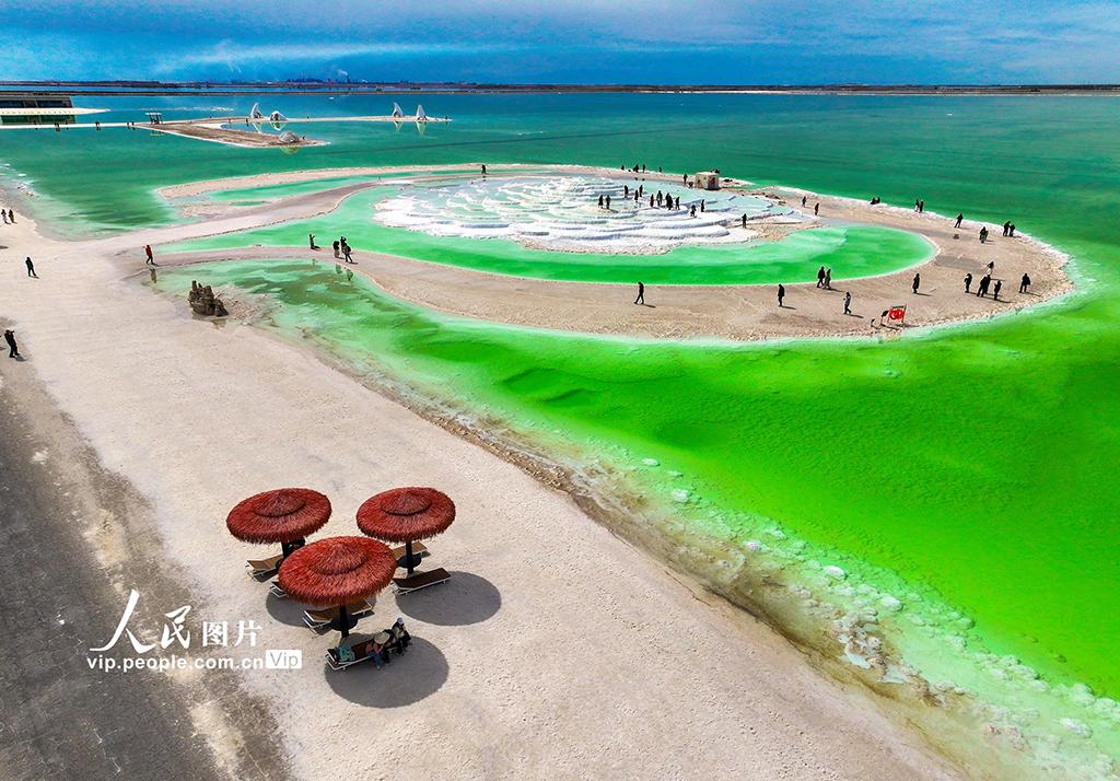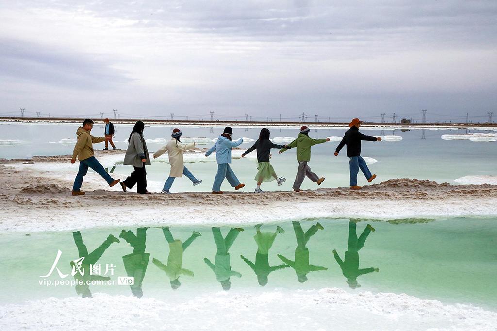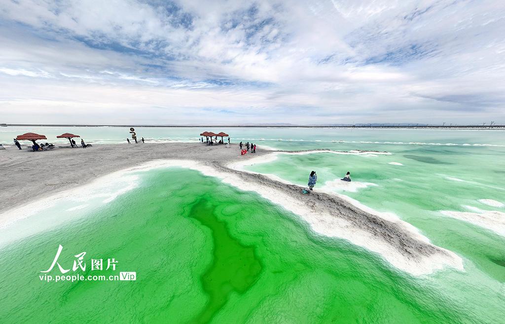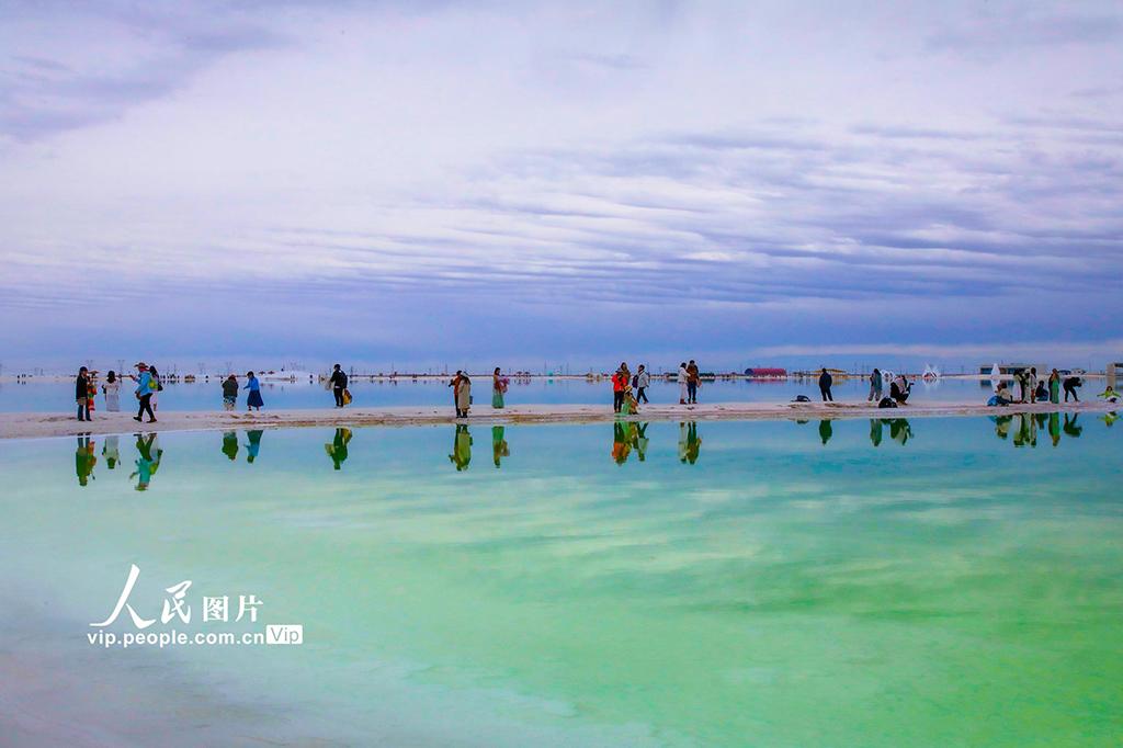 2025年10月12日,青海省海西蒙古族藏族自治州格尔木市,察尔汗盐湖风景区风光壮美,吸引众多游客慕名而来。张红心摄(人民图片网)